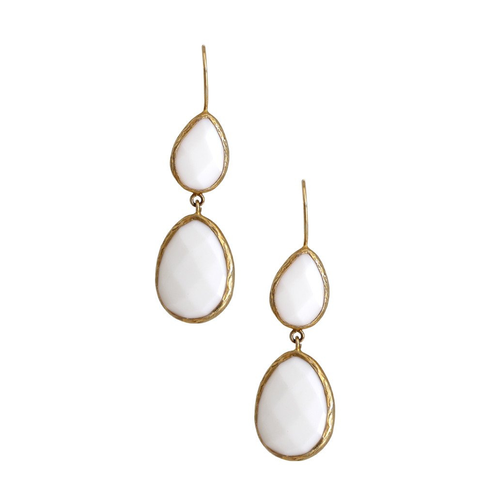 White Chalcedony Double Drop Earrings